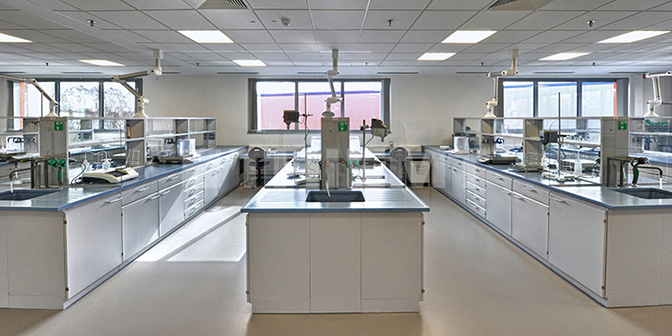 Für das Labor wurde die Labormöbeleinrichtung geliefert und von einem Montageteam installiert. Ebenso das Sensoriklabor welches zuvor auf Kundenwunsch maßgeschneidert gefertigt wurde. Abschließend wurden die Laborgeräte geliefert, in Betrieb genommen und die Anwender darauf trainiert.